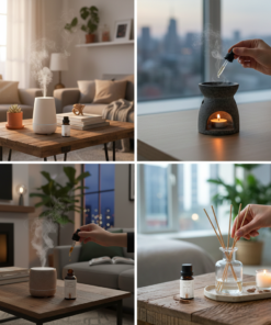 Les huiles parfumées peuvent s’utiliser dans un diffuseur, un brûle-parfum, un spray d’ambiance DIY, sur des textiles (linge, armoires) ou même lors du ménage pour parfumer durablement votre intérieur.