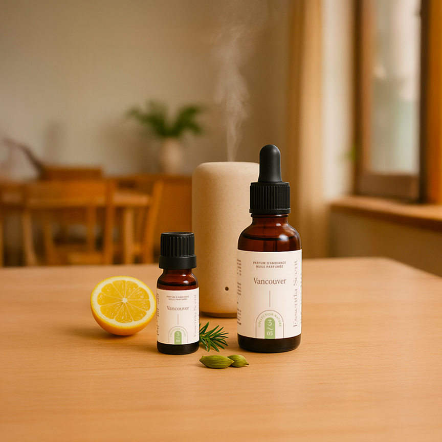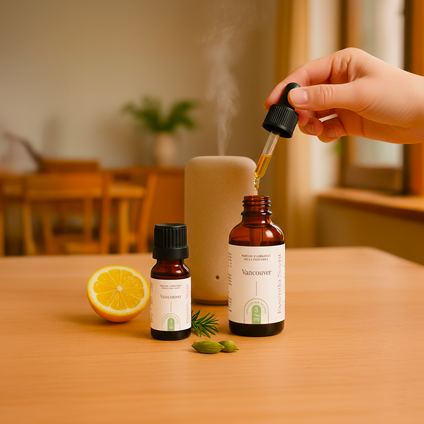 Les huiles parfumées peuvent s’utiliser dans un diffuseur, un brûle-parfum, un spray d’ambiance DIY, sur des textiles (linge, armoires) ou même lors du ménage pour parfumer durablement votre intérieur.