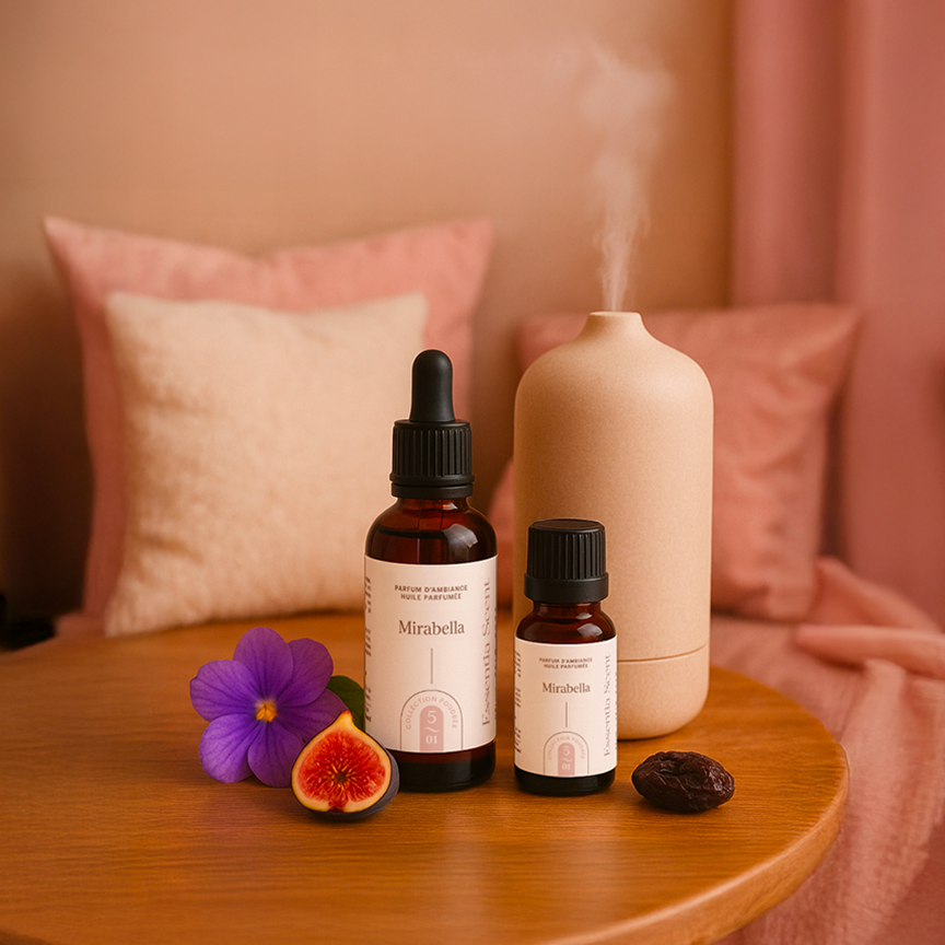 Les huiles parfumées peuvent s’utiliser dans un diffuseur, un brûle-parfum, un spray d’ambiance DIY, sur des textiles (linge, armoires) ou même lors du ménage pour parfumer durablement votre intérieur.